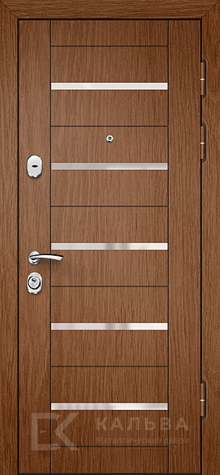 Фото «Железная дверь дуб с полосами и белой панелью для квартиры №150»